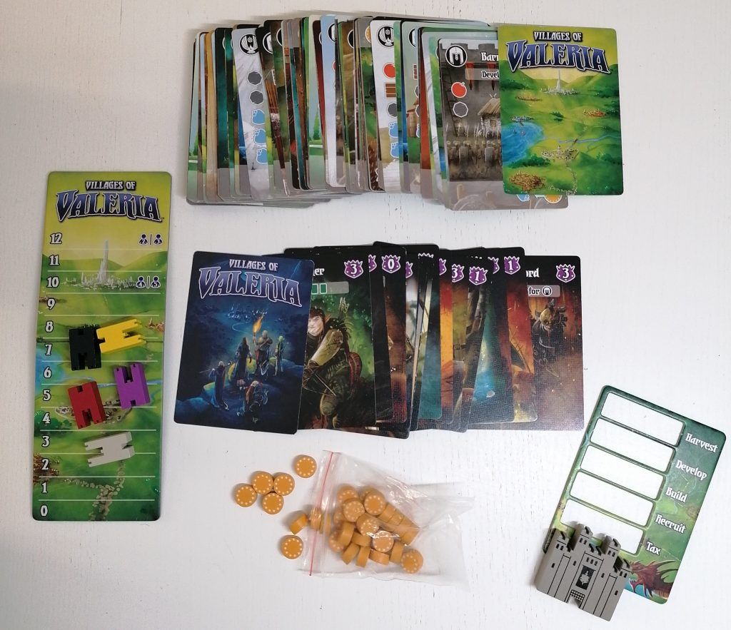Infine, com’è giusto che avvenga, rimane sempre una certa dose di azzardo. C’è il gioco che scopri per caso leggendo un commento su fb, e che, senza conoscere meccanica, numero di giocatori, né durata, decidi che sarà tuo, fosse l’ultimo gioco che compri (impossibile)! Ma come non vedere un segno del destino in certi titoli? Così mi è arrivato Villages of Valeria: “Valeriaaaaaaa! Si chiama Valeriaaaaaaaaa…mio, mio, miooooooo!”. Ecco, un gioco si può comprare anche così, uno solo però, non esagerate; tanto poi, al limite, se proprio non dovesse piacervi, potrete sempre regalarlo. In fondo, come dice sempre mia cugina Luisa, un gioco sbagliato può capitare, ma serve anche quello per capire cosa ci piace e trovare quello giusto al prossimo giro! A me è andata bene, perché Villages of Valeria ci è piaciuto molto. Ma come poteva non essere un buon prodotto? In fondo porta il mio nome…