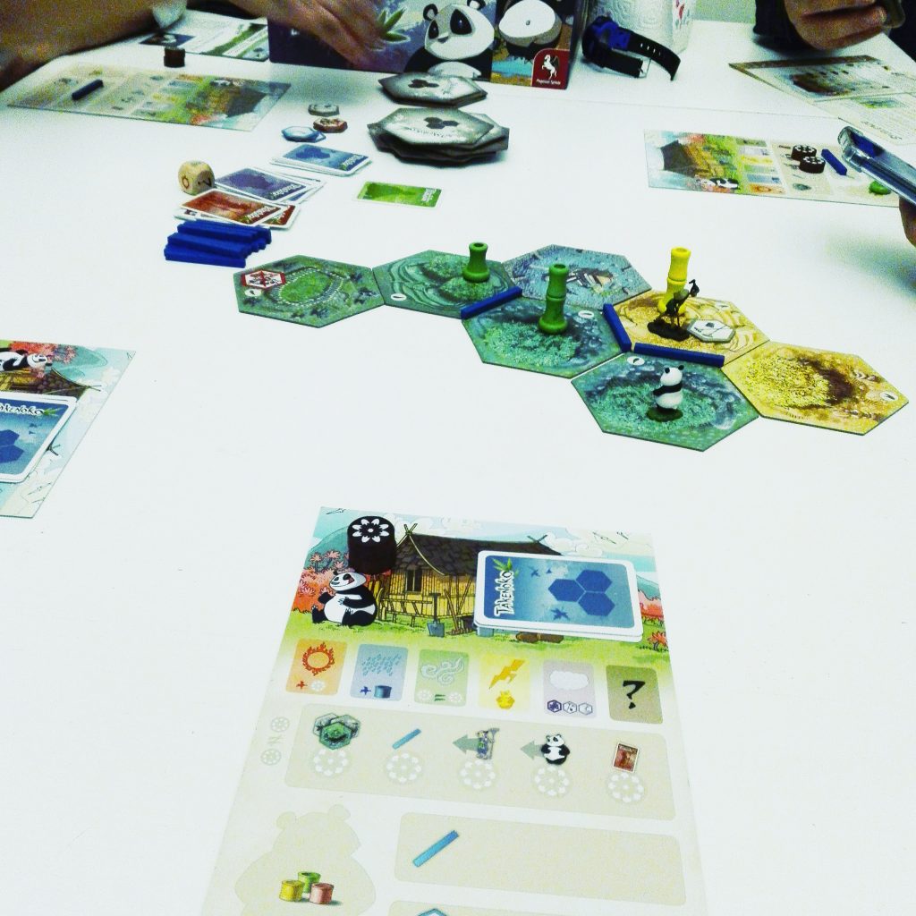 Takenoko è un gioco adatto a chiunque, si spiega in 10 minuti e si gioca tranquillamente, ma non diventa mai banale; anzi, possiede una discreta profondità, in quanto le tipologie di obiettivo sono molto varie, così che si potrà perseguire la vittoria attraverso strategie molto diverse. Antonio, ad esempio, punta su obiettivi di un solo tipo, pescando le carte obiettivo da un solo mazzo; io preferisco perseguire simultaneamente obiettivi di diverso tipo.