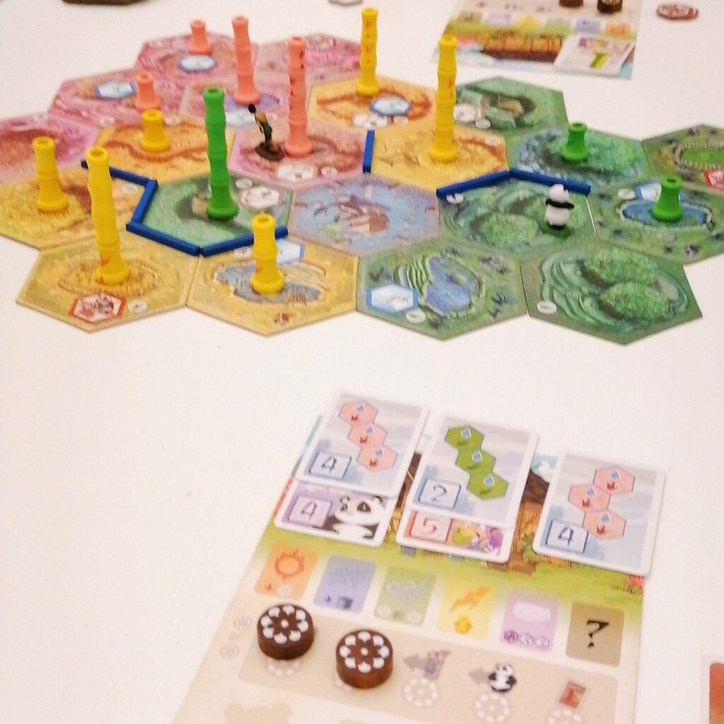 La crescita del bambù viene rappresentata mediante un sistema di sezioni ad incastro che visivamente rendono bene l’idea della crescita in verticale! Questo è probabilmente il punto di forza del gioco, gratificante sia a livello visivo che ludico.