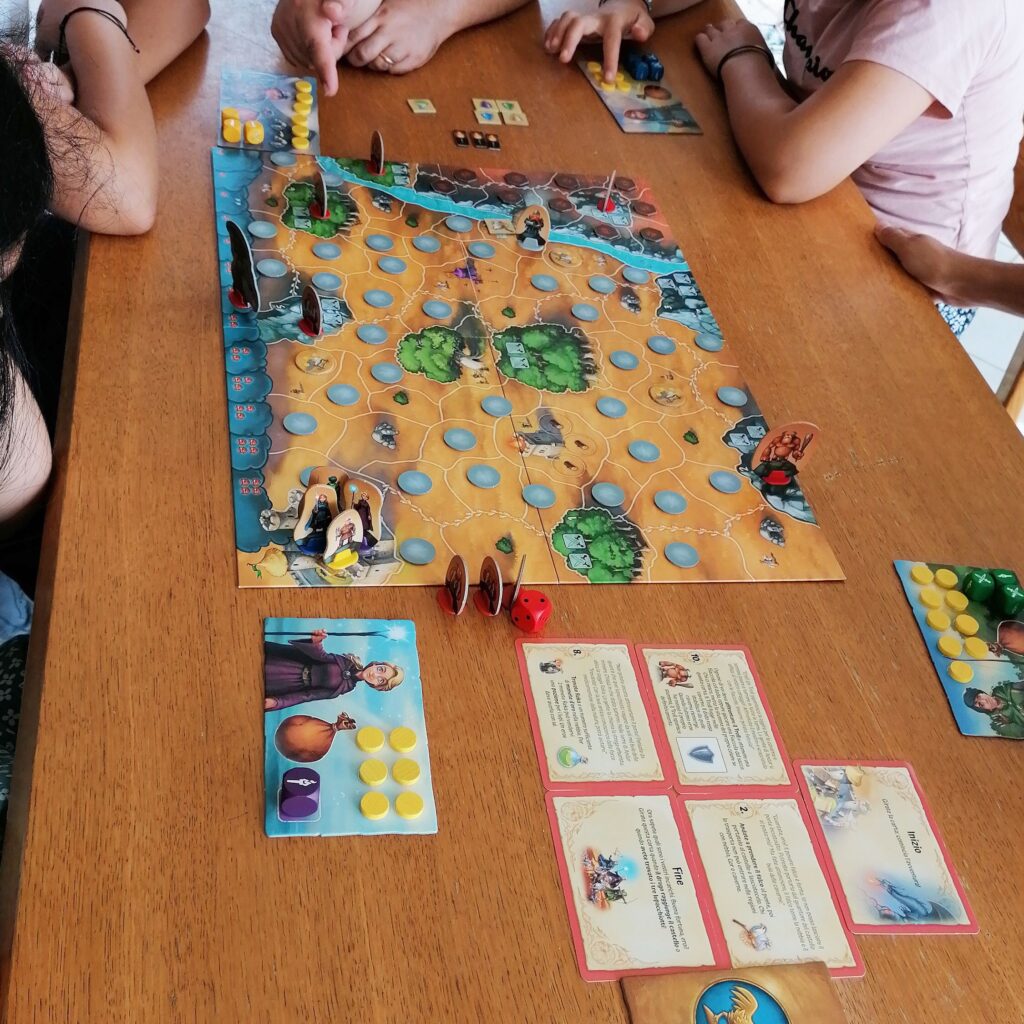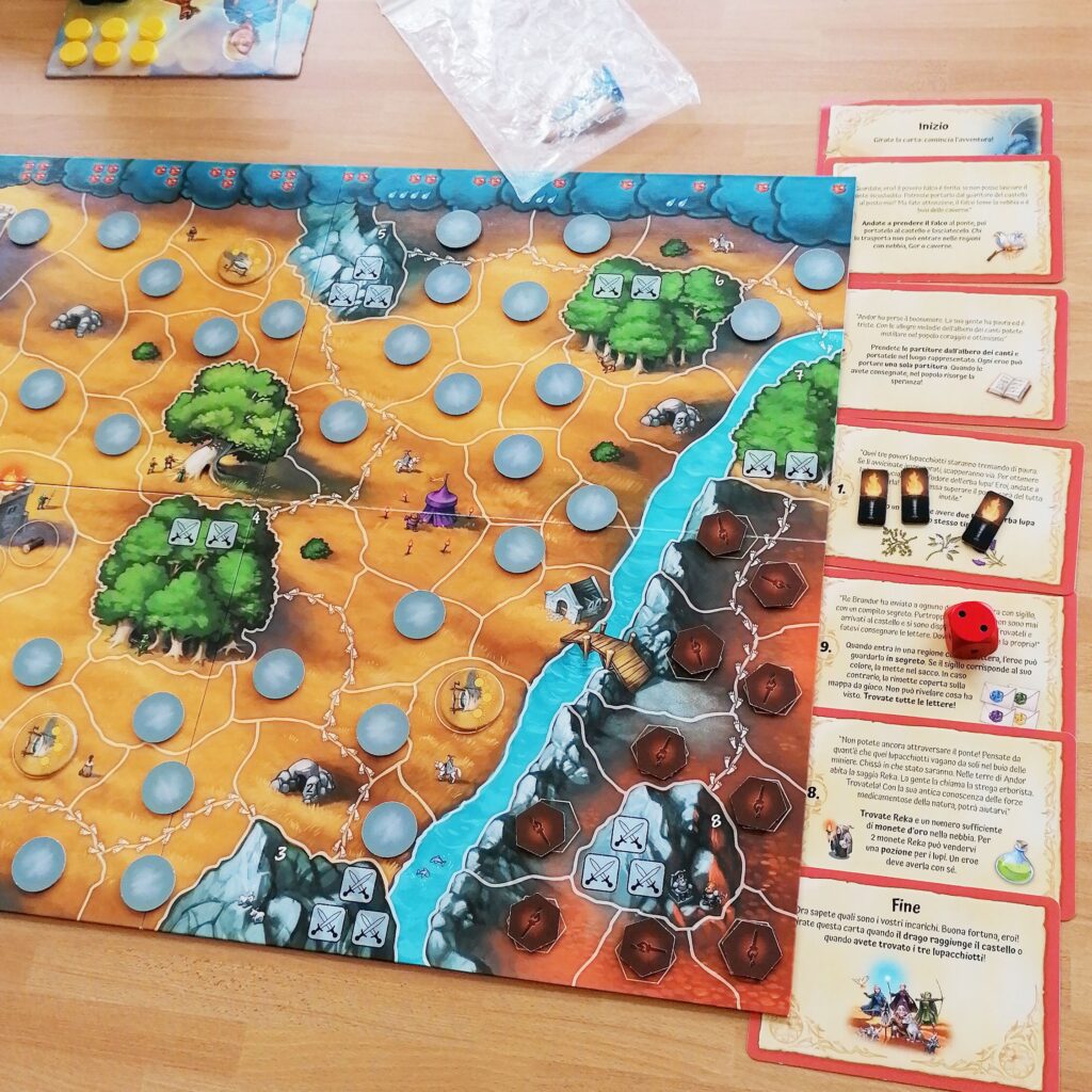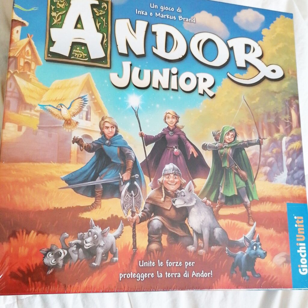 Andor junior è piaciuto tantissimo ai miei figli. E’ un gioco di avventura e magia, in cui andremo ad esplorare il nostro tabellone/mappa di Andor con lo scopo di ritrovare 3 lupacchiotti dispersi sulle montagne; il problema – anzi, di problemi ne avremo molti in verità – è che il territorio è infestato da orchi e mostri che tentano di arrivare al castello di Andor e che noi nel nostro cammino dovremmo cercare di ricacciare indietro.