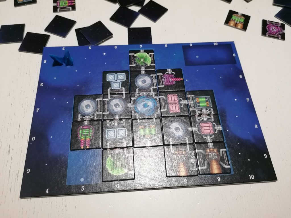 Naturalmente le tessere una volta posizionate non possono essere più toccate e devono rispettare alcuni vincoli di posizionamento. Finita questa fase si procede a verificare se le navi siano regolari e se non lo sono i giocatori dovranno togliere tessere posizionate male ed eventualmente tutte quelle che diventano isolate dal resto della nave, queste tessere si terranno sulla plancia nella sezione spazio aperto e verranno contate a fine gioco come punti negativi. I giocatori a seconda della sequenza in cui finiscono di costruire la nave metteranno sulla plancia volo la loro astronave (il primo sarà primo, il secondo, secondo e così via)