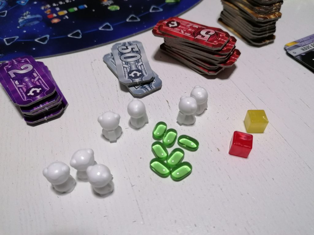 In questa fase assisteremo inermi allo sfacello della nostra bellissima nave, alla perdita dei nostri amati astronauti ed all’esaurimento delle nostre batterie, però possiamo anche ritirarci dal volo e quindi non ambire a diventare i primi sul tracciato volo se abbiamo la sensazione di finire veramente troppo male. A fine gioco verificheremo come e se siamo arrivati a destinazione e soprattutto se abbiamo un carico da consegnare, prenderemo crediti di conseguenza e ne perderemo a seconda dei pezzi persi nello spazio, poi decreteremo il vincitore…anche se non è necessario!