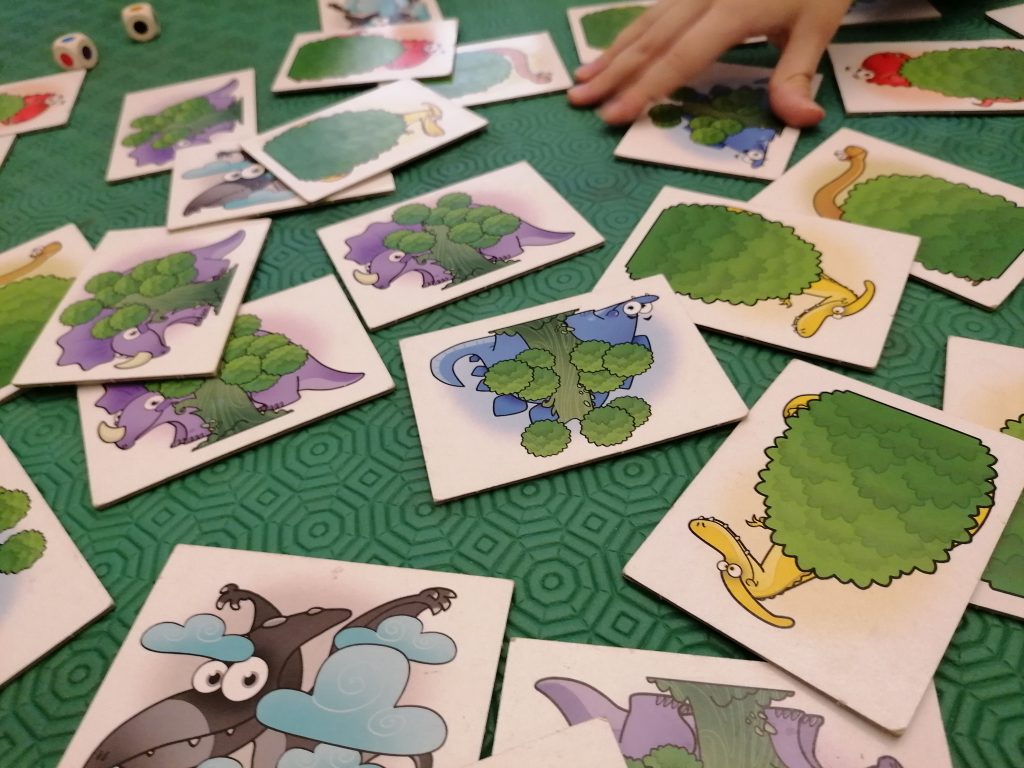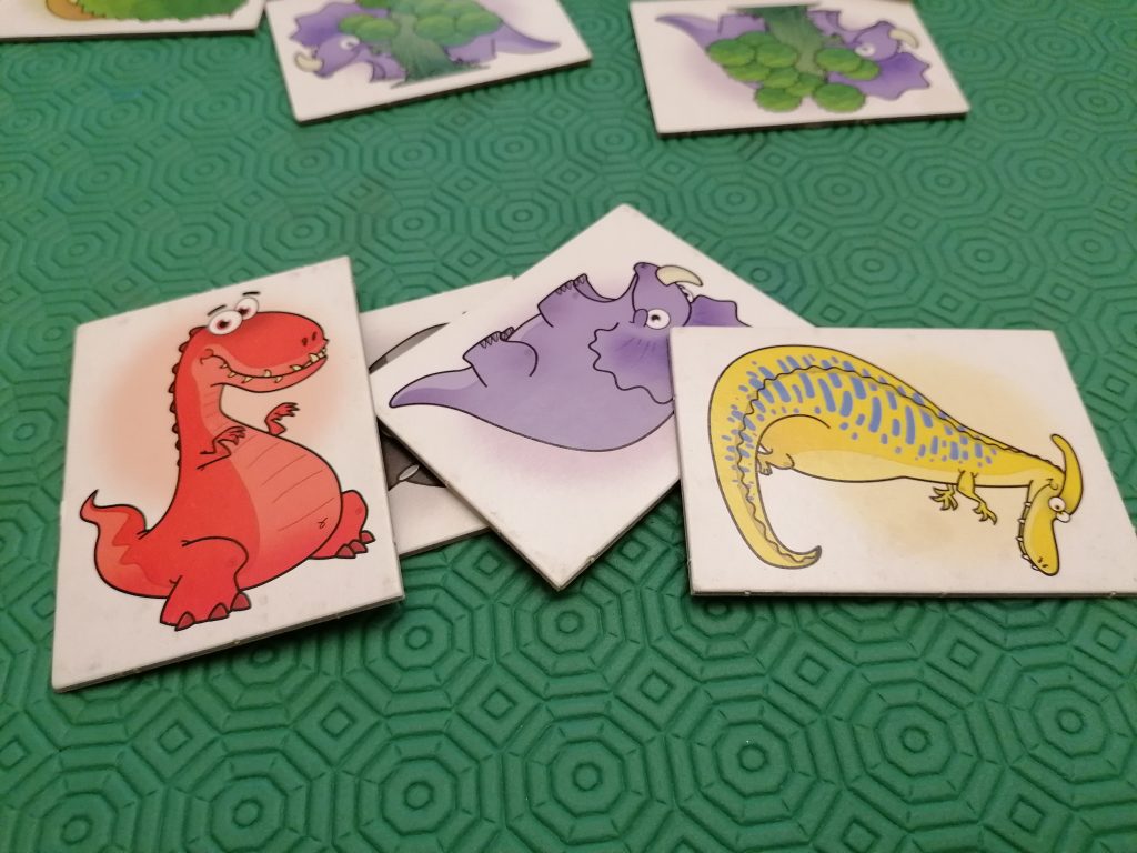 Ultimamente dovendo far posto in libreria, ho chiesto ai figli quali giochi erano disposti a regalare ai cugini e questo è stato uno dei tanti perché effettivamente oramai a 9 ed 11 anni non si giocava veramente più se non quando venivano i cuginetti a trovarci. Abbiamo portato in giro NasconDino in questi anni tantissimo, soprattutto agli eventi di GdT RomaPlayer ed ha fatto giocare tantissimi bambini. Ora NasconDino lo ha Elena, la cuginetta di 4 anni e sono sicura che lo giocherà moltissimo!