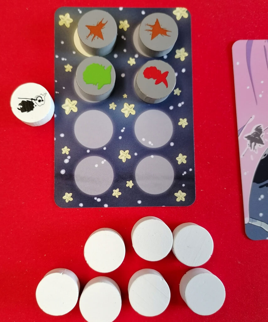 Onirico ha una scatola resistente e molto grande in cui trova comodo alloggiamento tutto il materiale. Sono presenti ampie plance giocatore in cartoncino piuttosto resistente. La plancia giocatore presenta sulla sinistra un’area rettangolare con spazi colorati contrassegnati da numeri, in cui andremo a piazzare i frammenti di sogno, sui lati della quale troveremo le icone dei bonus di colonna e di riga. Sulla parte destra invece, la zona subconscio nella sezione superiore, e nella sezione inferiore i tracciati verticali dei moltiplicatori di punteggio, in cui andremo, in fase di setup, a posizionare 5 cubetti colore (ovviamente) sul valore iniziale.