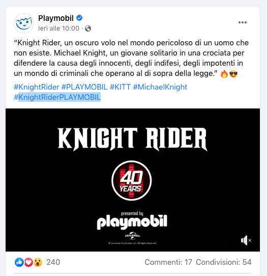 Con un messaggio ed un video sui loro canali social di poche ore fa PLAYMOBIL sembrerebbe annunciare l’uscita di un kit PLAYMOBIL di KnightRider. Il messaggio purtroppo non contiene dettagli a parte il video di K.I.T.T. che corre nel deserto e si conclude con un Maggio 2022.