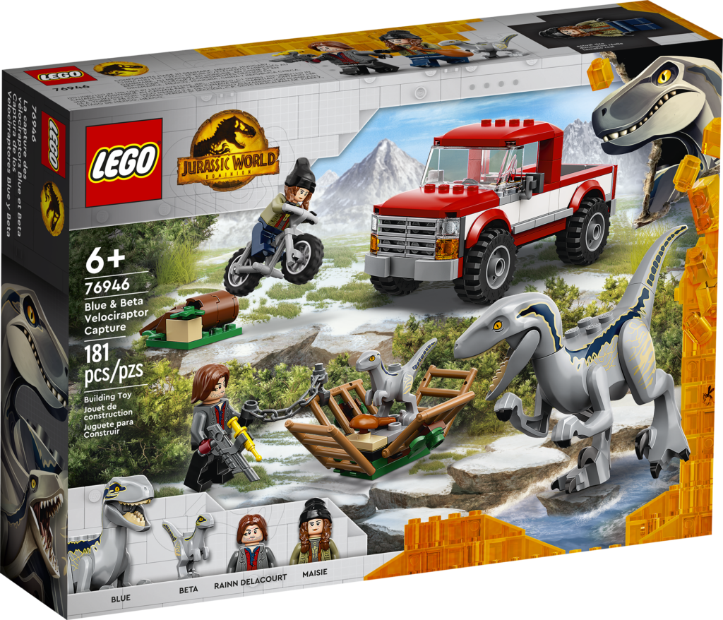 Descrizione: Dai un’occhiata a questo fantastico set di gioco, ispirato al film in uscita Jurassic World Dominion. Contiene le minifigure di Maisie e Rainn Delacourt, i dinosauri Blue e Beta, un camion, una bicicletta e una gabbia per dinosauri con trappola, più una coscia di pollo da usare come esca per i dinosauri. Quindi, inizia a costruire e poi racconta le tue incredibili storie di azione e avventura.