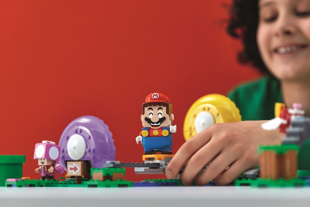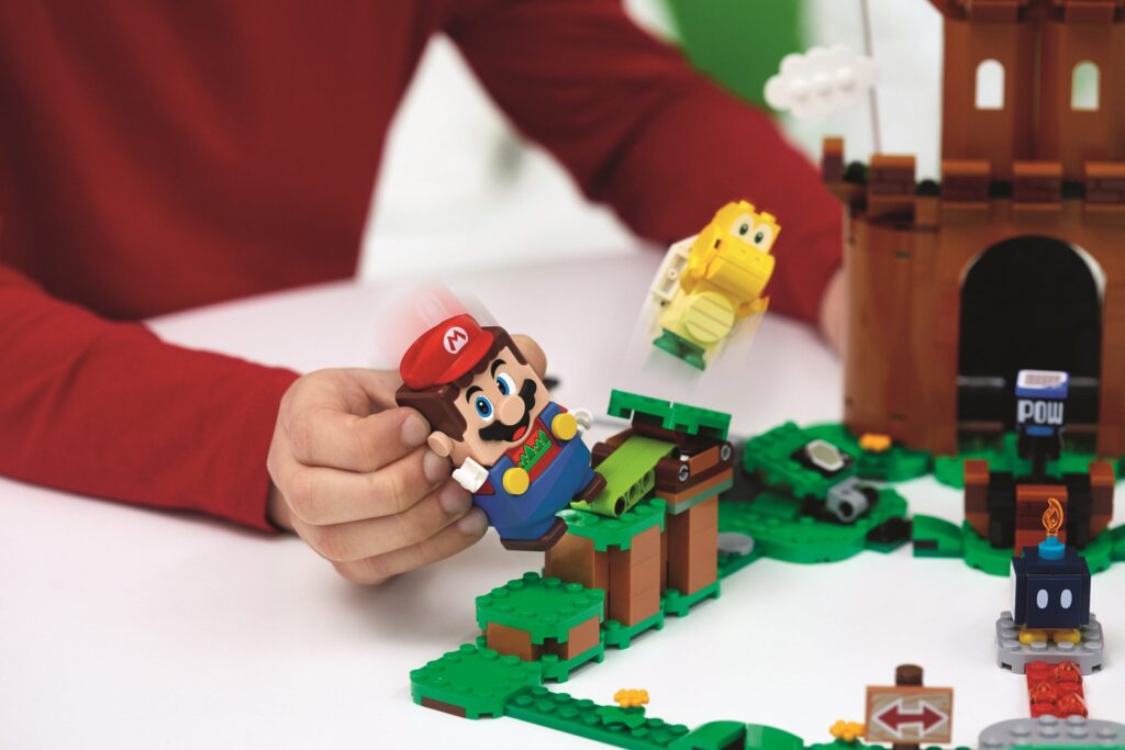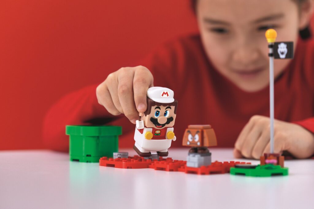 Lo Starter Pack contiene sette mattoncini azione per interagire con il personaggio LEGO® Mario™, che grazie ai suoi schermi LCD sugli occhi, sulla bocca e sul petto riesce a mostrare istantaneamente le sue reazioni al movimento, al colore e alle azioni dei mattoncini. A maggio LEGO Group e Nintendo hanno inoltre presentato una serie di Power-Up Packs – tra cui Mario™ Gatto e Mario™ Costruttore – per accrescere le possibilità di gioco con una varietà di tute per LEGO® Mario™, ognuna delle quali gli conferisce nuove caratteristiche e poteri.