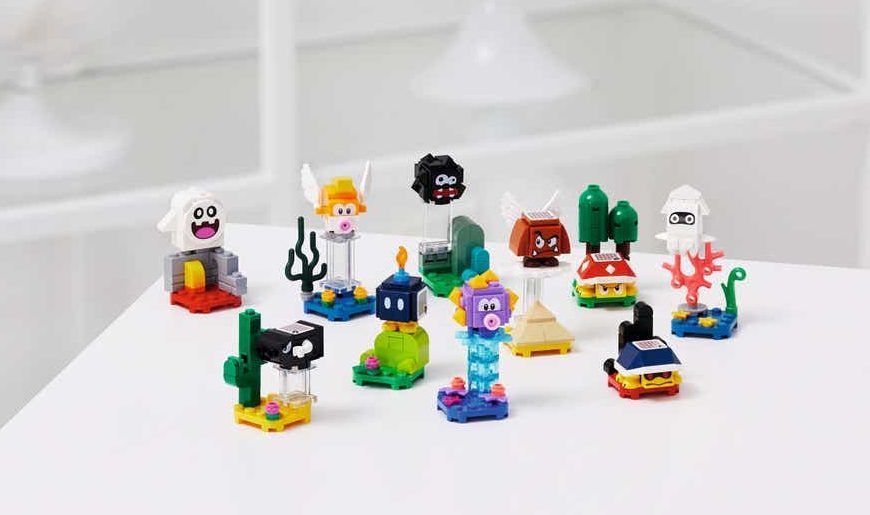 Si presentano oggi anche dieci personaggi nemici da collezionare, disponibili nei Pack Personaggi, pack a sorpresa per un’esperienza ancora più emozionante. Ogni pack conterrà un personaggio da costruire e un’action tag con cui giocare… potrebbe essere un Paragoomba, Fuzzy, Spiny, Buzzy Beetle, Bullet Bill, Bob-omb, Eep Cheep Cheep, Blooper, Urchin o Peepa!