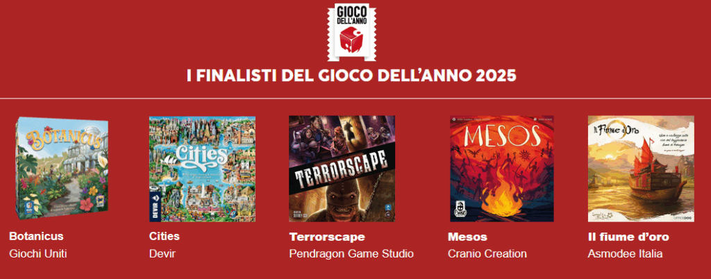 Svelati i 5 finalisti del premio Gioco dell’Anno 2025, il concorso organizzato da Lucca Crea srl, la società proprietaria di Lucca Comics & Games.