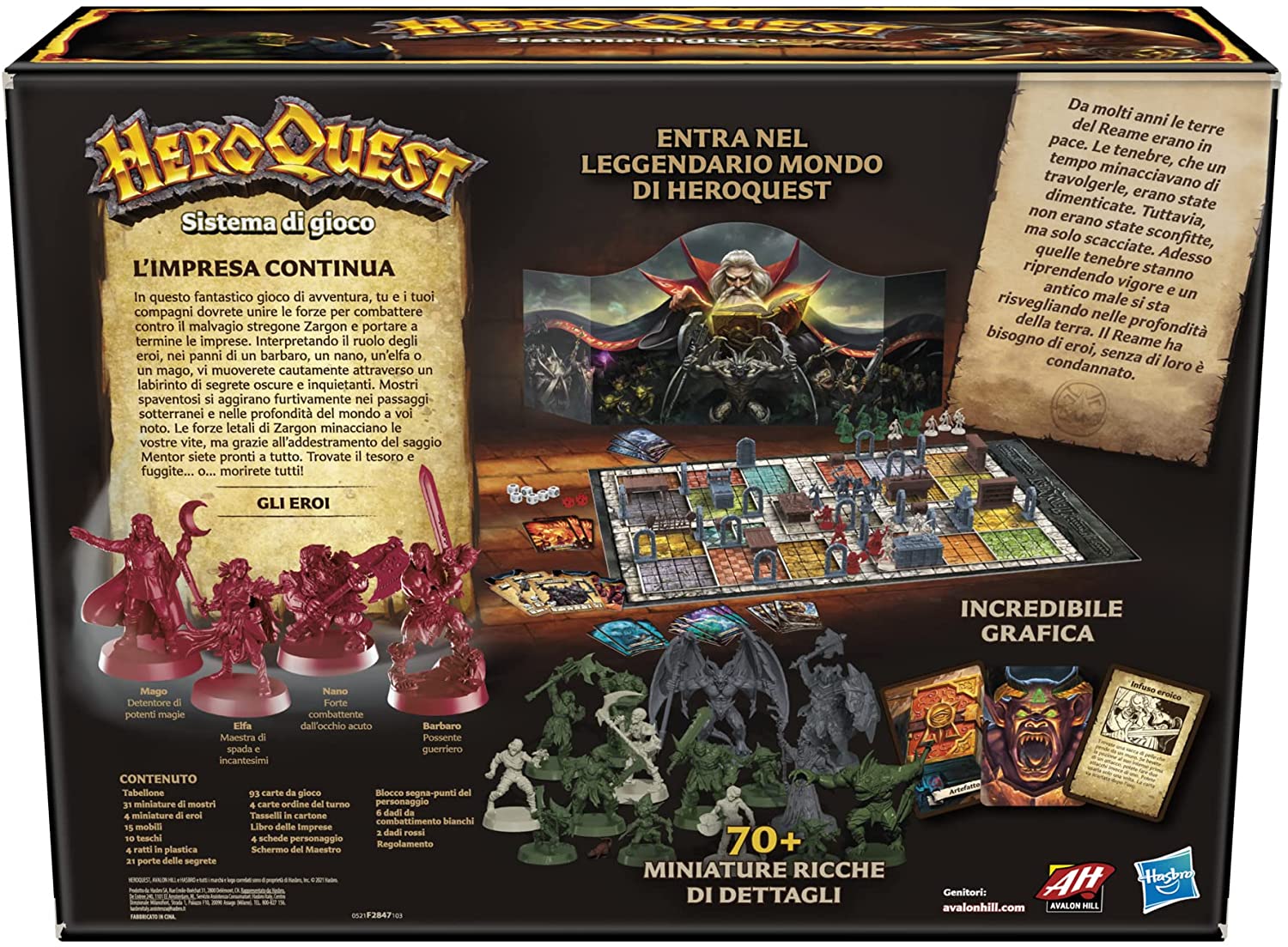 Da quanto si è appreso da Hasbro, la scatola è preordinabile presso i negozi specializzati al prezzo di 139,90 euro, all’interno della confezione troveremo lo storico tabellone, 65 miniature, il mobilio, 90 carte, il libro delle missioni e tutto quello che ha reso HeroQuest una pietra miliare della storia del gioco. Tutte le grafiche e le miniature sono state riviste dal punto di vista estetico ed aggiornate ai nuovi standard qualitativi di mercato.